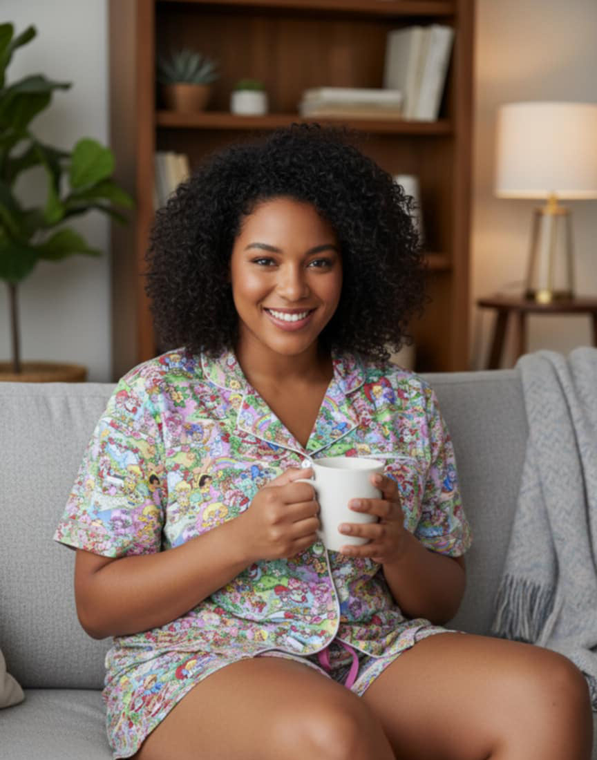 RTS Women's Button down top and shorts set - Strawberry Surprise